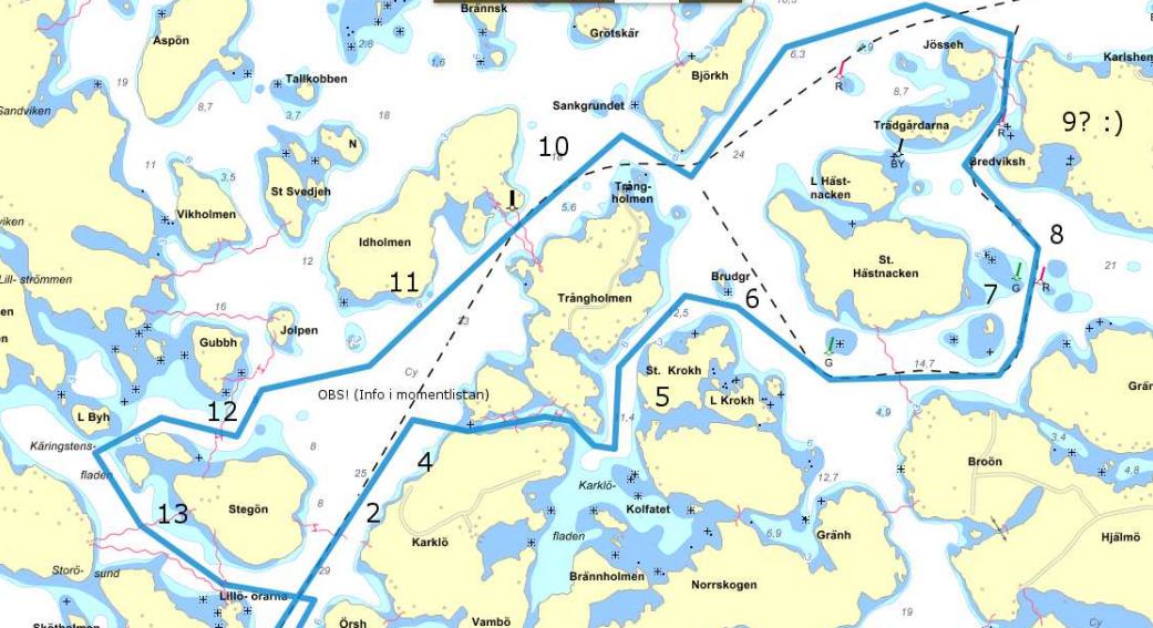 – Sjökortskopian du har fått får ej användas för navigering men du ska rita hur du har gått. Du lämnar in denna tillsammans med de svarsuppgifter du eventuellt har fått till.